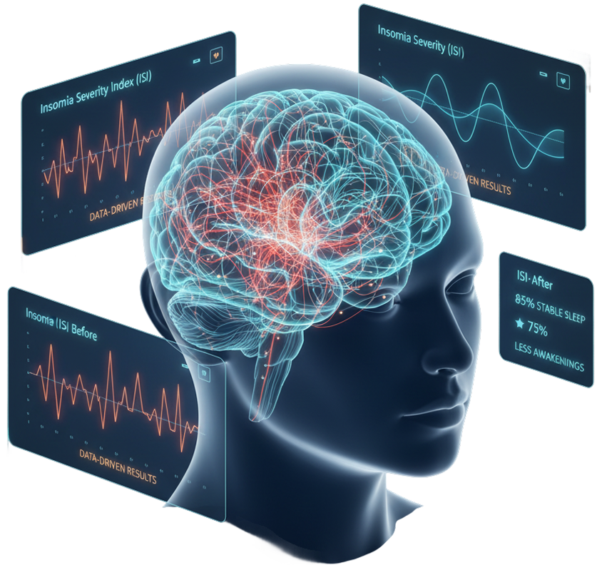 - ISI score reduced by 7.55 (i.e., 48% reduction).