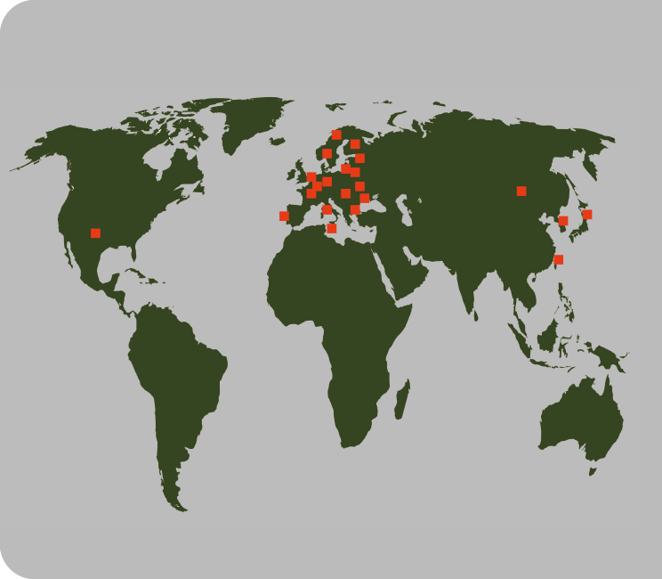 Countries with registered patents include the United States, France, Italy, Sweden, Germany, Denmark, Belgium, Netherlands, Finland, Austria, Portugal, Bulgaria, Romania, Slovenia, Estonia, Lithuania, Luxembourg, Latvia, Malta, South Korea, Japan, China, and Taiwan.